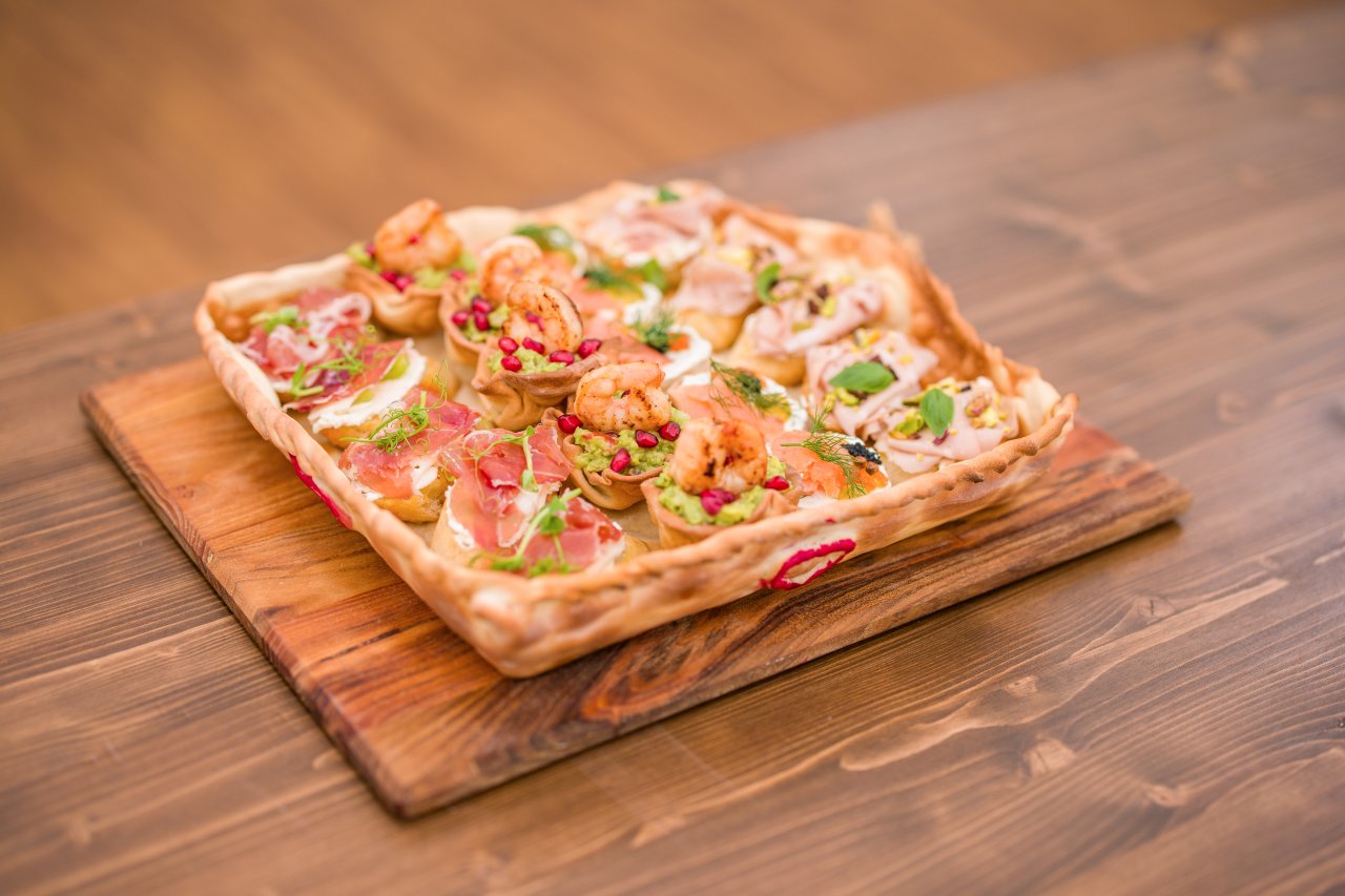 Wonton košíčky naplníme guacamole, vložíme krevetu a ozdobíme granátovým jablkem a chilli vlákny.