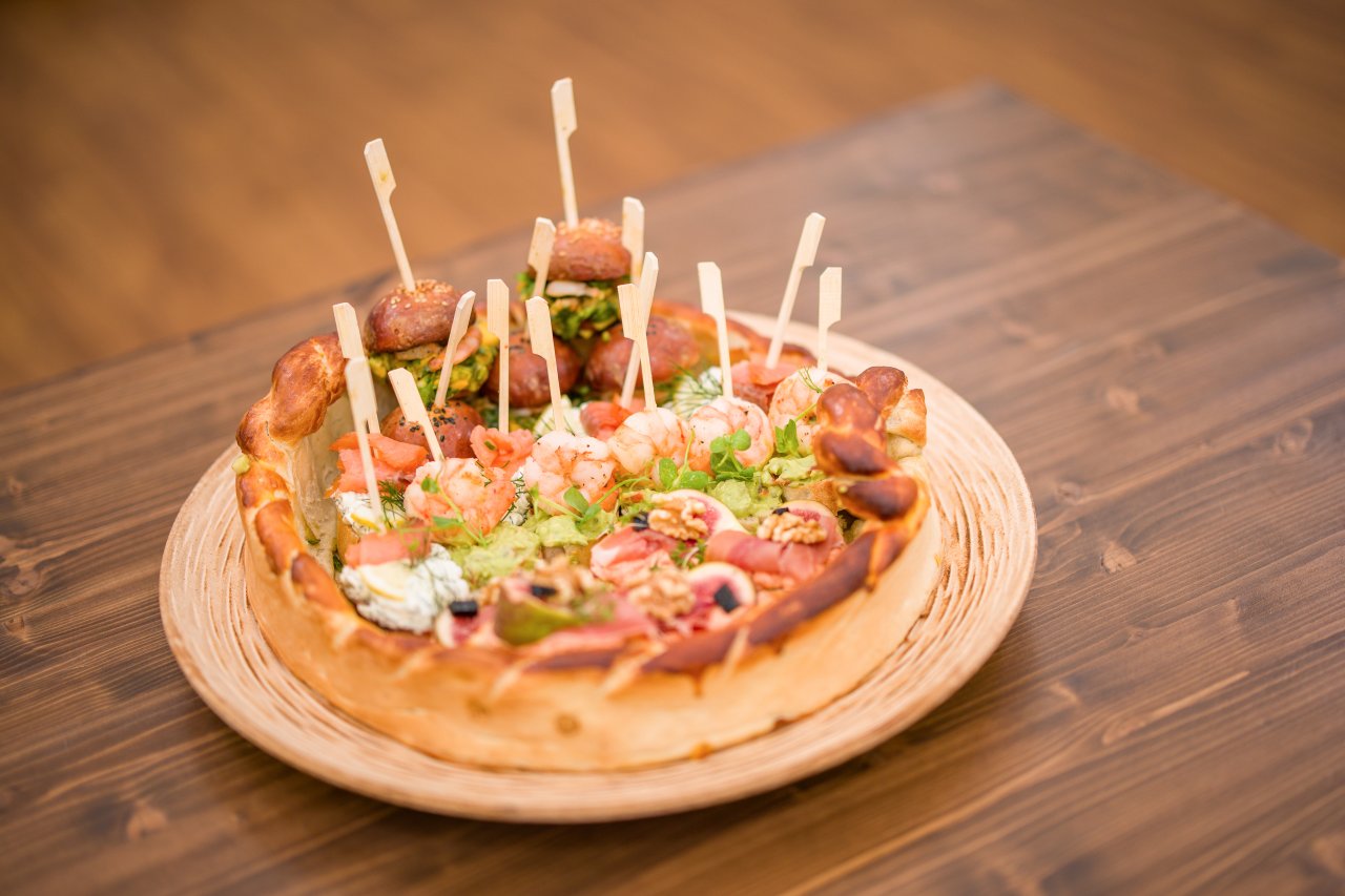 Losos na kopru, kreveta na guacamole, parmská šunka na pečené kapii, mini burgery s krevetovým salátkem