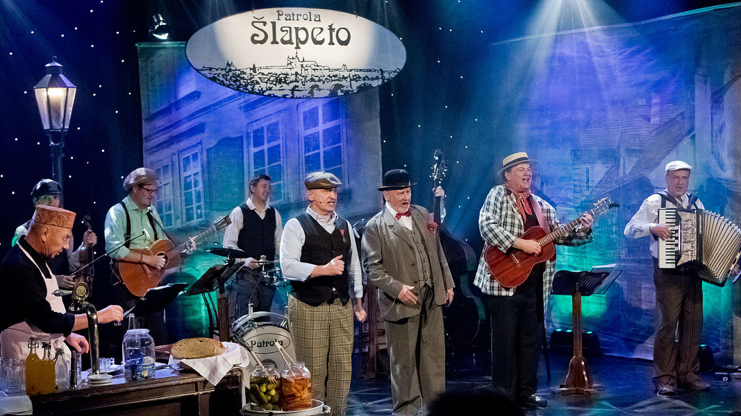 Tři desítky let staropražských, hospodských, šantánových, kabaretních písniček, kupletů a také originálních Hašlerek. To vše přibaleno k vtipným monologům, dialogům či skečům v duchu dávno zapomenuté doby, která dnes již trochu zavání romantikou pečených kaštanů, čerstvých taliánů, piva od Pinkasů, výletů lodí na Zbraslav nebo prvních trampů jedoucích na osadu Ztracenka. To vše je skupina Šlapeto, respektive od roku 2001 skupina Patrola Šlapeto. Na oslavu více než třicetileté své existence si do divadla Semafor dovolila pozvat své současné i bývalé členy, ale také vzácné gratulanty.