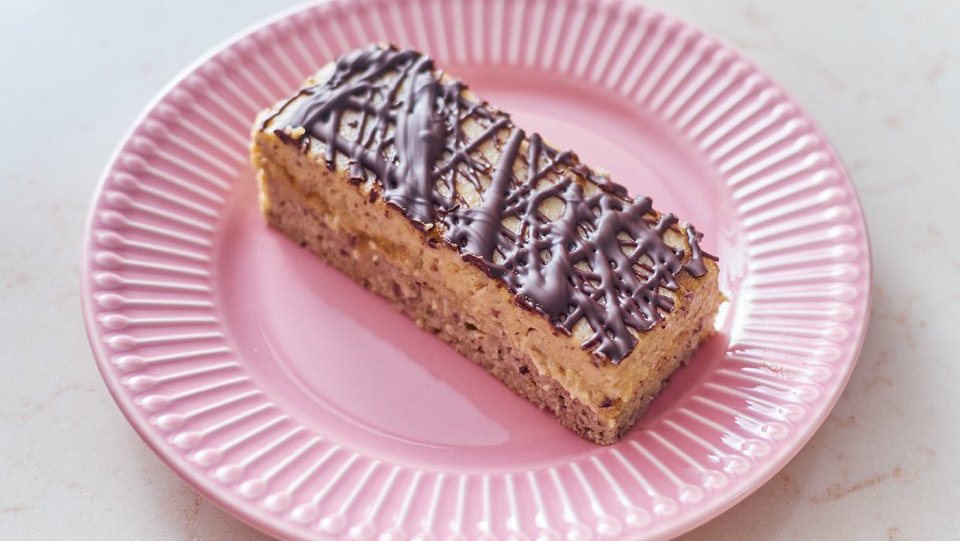 Do druhé poloviny těsta přidáme rum i změklé máslo a ušleháme hladký krém. Upečené těsto necháme vychladnout. Potom potřeme marmeládou (nejlépe meruňkovou či angreštovou) a navrstvíme krém.