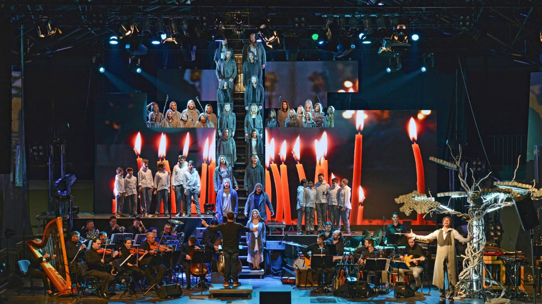 Legendární scénická MŠE (MASS) Leonarda Bernsteina vznikla na objednávku Jacqueline Kennedyové pro otevření Kennedyho kulturního centra ve Washingtonu (Center for the Performing Arts).