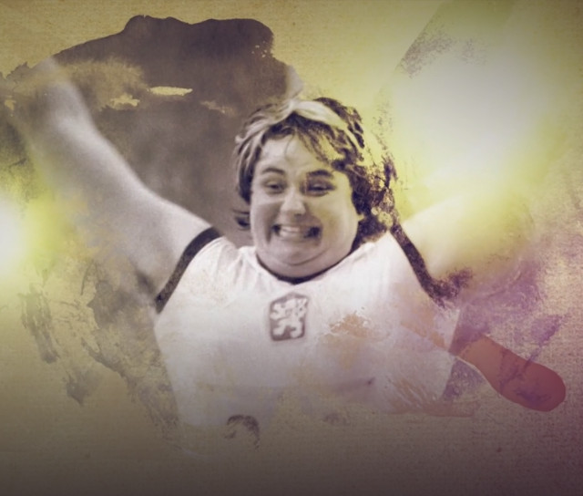 Medailon bývalé československé atletky, mistryně světa ve vrhu koulí.