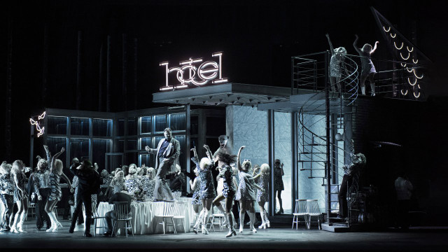 Uvidíte představení režiséra Mariusze Trelińského na scéně Borise Kudličky v Theater an der Wien (Divadlo na Vídeňce). Děj je přenesen do moderní doby, do nemilosrdného prostřední zbohatlických mafiánů.