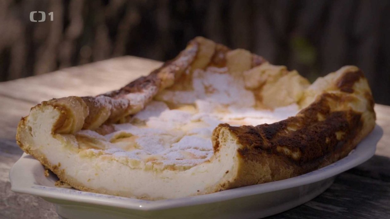 Na předpečené těsto (bude zrůžovělé) navrstvíme tvarohovou náplň. Z 1/3 zbylého těsta rozválíme plát a nakrájíme tenké proužky na mřížky, které poklademe na náplň. Pečeme 60 - 80min. na 180°C.