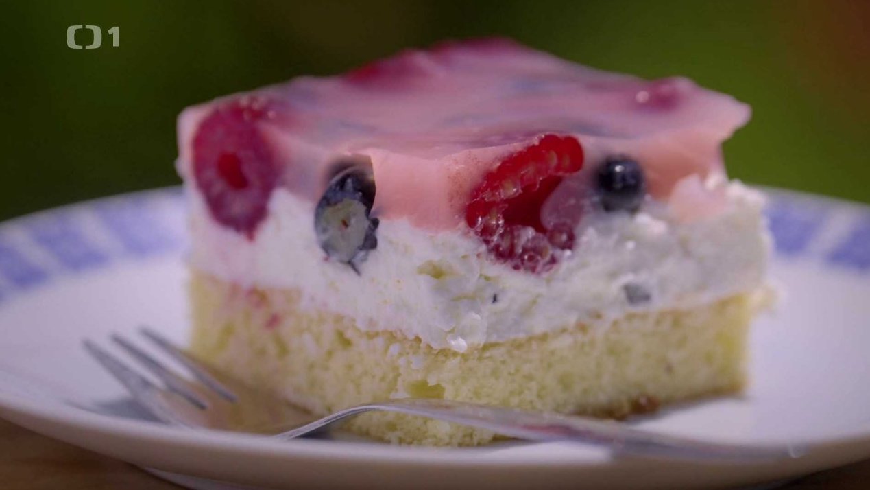 Vyšleháme si tvarohy s cukrem, pak pomalu za stálého míchání nasypeme ztužovač do mléka, až zhoustne a promícháme s tvarohovou směsí v hladký krém. Ušleháme šlehačky dotuha a zlehka všleháme do tvarohové směsi, kterou pak navrstvíme na vychladlý piškot, poklademe ovocem a přelijeme ovocno – pudinkovým přelivem. Necháme zatuhnout v ledničce.