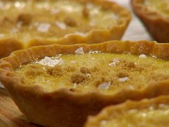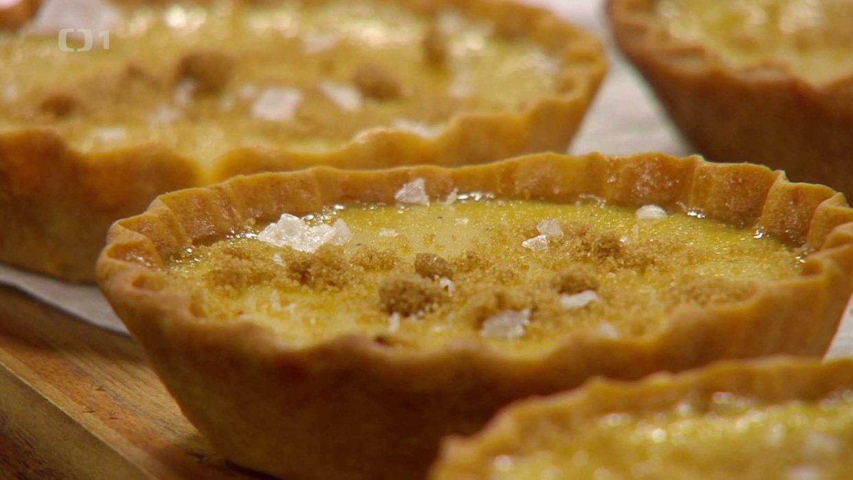 Na krémovou směs zahřejeme smetanu z vanilkou, nevaříme. Rozmícháme žloutky s cukrem a solí, přidáme zahřátou smetanu a rozmícháme dohladka. Předpečené tartletky potřeme rozšlehaným vejcem a ještě 5 min. dopečeme. Poté do nich nalijeme smetanovou směs a pečeme při 150°C do zatuhnutí asi 15 až 20 min. Po vychladnutí je vyjmeme z formiček a dozdobíme solí.