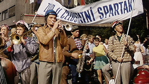 V Praze se koná II. celostátní spartakiáda, a tak se do hlavního města sjíždějí tisíce cvičenců z celé republiky. Na několika motocyklech přijíždí i studentský jazzový orchestr ze Strakonic s trumpetistou Frantou. Ten se na první pohled zamiluje do půvabné Moravačky Jany, která přijela z Uherského Hradiště cvičit s dorostenci. Aby na ni zapůsobil, vydává se za rodilého Pražáka. Dokonce se mu s úspěchem podaří provést Janu městem, které sám zná jen z pohlednic. Jenže jeho lež se provalí, když Jana s kamarádkami navštíví koncert jeho kapely a záhy zjistí, že její jméno má figurovat na bubnu kapely vedle jmen předchozích Frantových dívek. Provinilý trumpetista bude mít co dělat, aby Janu získal zpět. Poslední možnost bude mít během Janina cvičení na Strahově...