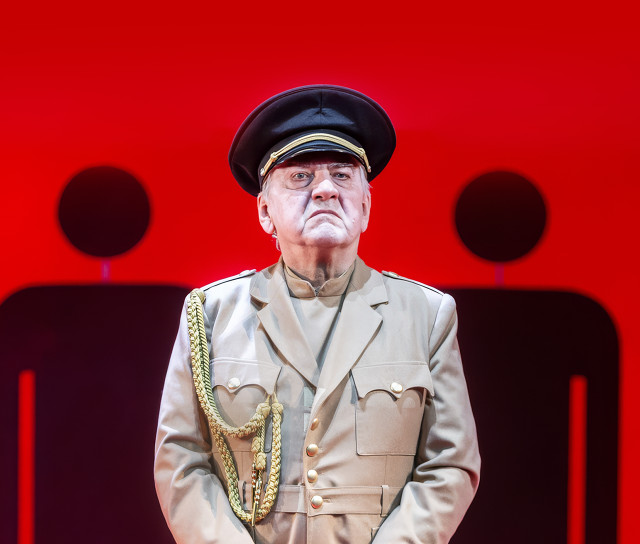 Čapek neusiloval ve svých hrách o divadlo psychologických konfliktů, ale o divadlo lidského údělu a postavení člověka ve společnosti. Z toho důvodu také Dočekalova inscenace vychází z principů brechtovského divadla (zcizovací komentáře, převedení nedramatických částí do hudební podoby, projekce atd.). Současnými postupy a prostředky se tak podařilo ukázat, že v Čapkově skoro devadesát let staré hře je uloženo leccos nadčasového, co v nové společenské konstelaci přirozeně ožívá. V dalších rolích hrají Eva Salzmannová, Tomáš Milostný, Milan Kačmarčík, Kryštof Krhovják, Radek Melša a Kristýna Jedličková.