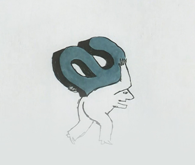 Oživená písmena, tvary a další objekty ve třech karikaturách o lidském snažení.