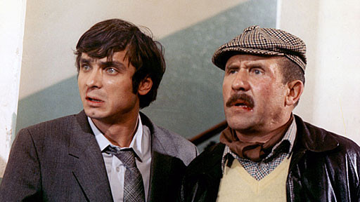 Ztratit tvář nakonec není to nejhorší. Malér je získat tvář někoho jiného. Petr Nárožný a Oldřich Kaiser v české komedii Václava Vorlíčka.
