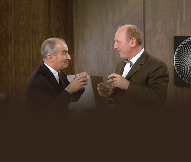 Protože se jedná o konec závěrečného dialogu Louise de Funese s Bourvilem, rozhodli jsme se, že diváky nepřipravíme ani o tento kousek filmu. Dialog bude dokončen – ovšem s českými podtitulky. Divák tak bude mít jedinečnou příležitost si porovnat hlasy Louise de Funese a Bourvila s jejich kongeniálními českými protějšky Františka Filipovského a Jiřího Brudera.