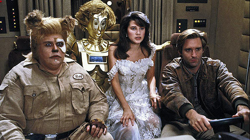 Neobyčejně technicky vyspělí Spaceballové, nelítostný nepřátelský rod vedený zákeřným prezidentem Skroobem, chtějí za každou cenu ovládnout celý vesmír. Doma si zničili veškerý životodárný kyslík, a tak chtějí nejdříve ukrást zásoby vzduchu ze sousední planety Druidie. K tomuto účelu se jim opravdu moc dobře hodí útěk poněkud rozmazlené princezny Vespy z její vlastní svatby. Proto jedinou dceru krále Rolanda okamžitě zajmou, aby ji mohli využít jako velmi účinný nástroj jeho vydírání. Do takto rozehrané hry ale nečekaně vstupuje nájemný vesmírný dobrodruh Lone Starr se svým sluhou, člověkopsem Blafem... V této komedii se známý hollywoodský režisér Mel Brooks (Němý film, Mladý Frankenstein) zaměřil na filmové sci-fi série Star Wars a Vetřelec, které s neobyčejnou chutí napodobuje, cituje a paroduje. Filmové gagy a některé okázalé zvláštní efekty se v jeho "dokonale řízeném vesmírném blázinci" střídají s překvapivou rychlostí. Hlavní role ztvárnili Bill Pullman (Lone Starr), John Candy (člověkopes Blaf), Rick Moranis (Lord Tmavá Helma). Mel Brooks si zahrál dvojroli Skrooba a Jogurta, herec John Hurt skvěle paroduje svou roli z filmu Vetřelec.