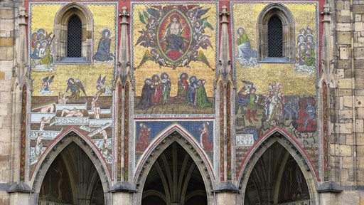 Historie mozaiky Zlatá brána na Pražském hradě sahá do 14. století. V té době Karel IV. inspiroval stavitele Chrámu svatého Víta k dílu, které nemá obdoby na sever od Alp. Během staletí mozaika prošla několika opravami. Té poslední - v době, kdy vzácné dílo bylo již v kritickém stavu - se ujali specialisté z Gettyho konzervačního institutu z Los Angeles. Díky jejich odborné a finanční pomoci mohou návštěvníci Pražského hradu spatřit svatovítskou mozaiku v podobě, jakou jí dali italští umělci před mnoha staletími.