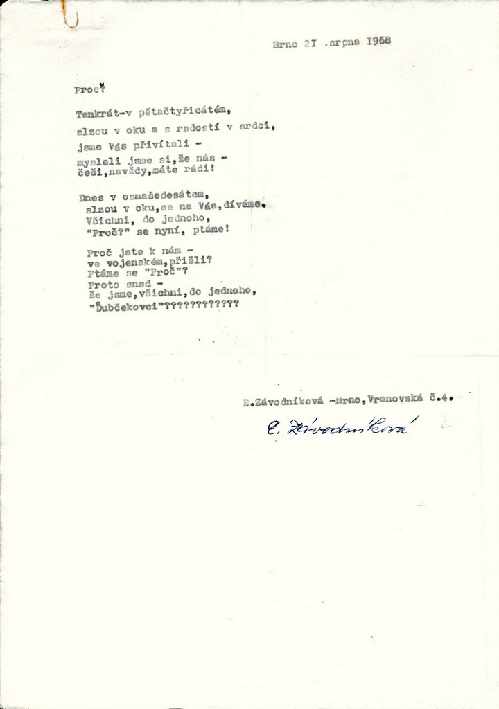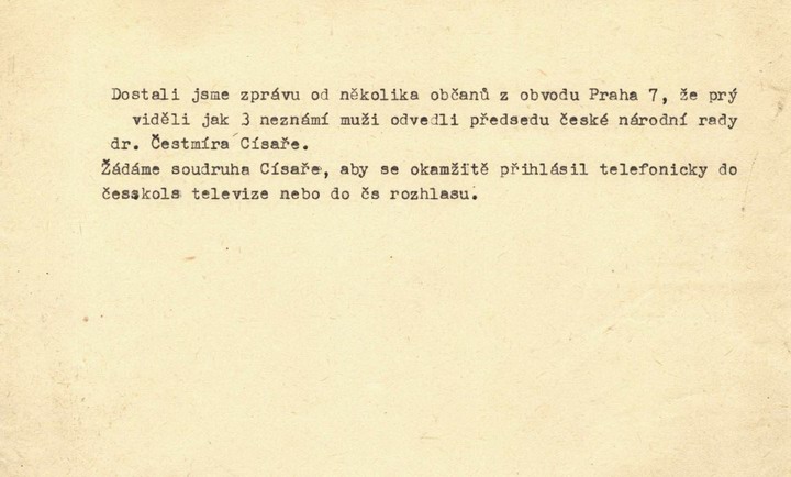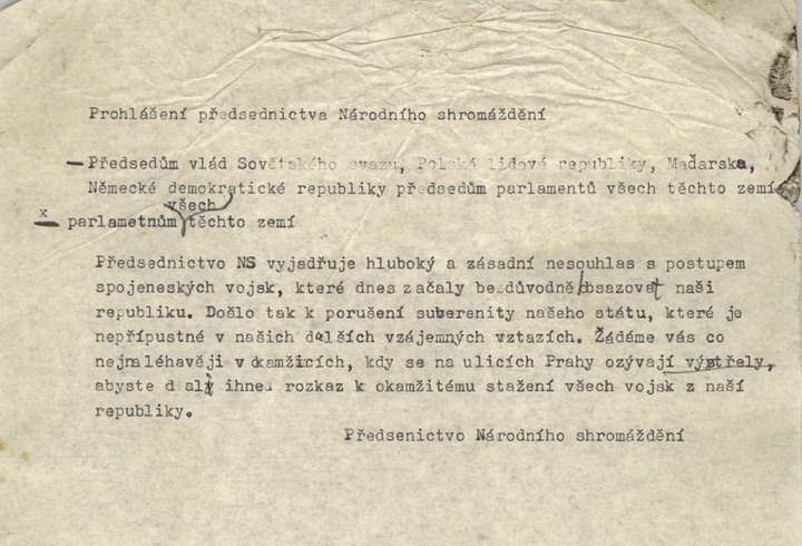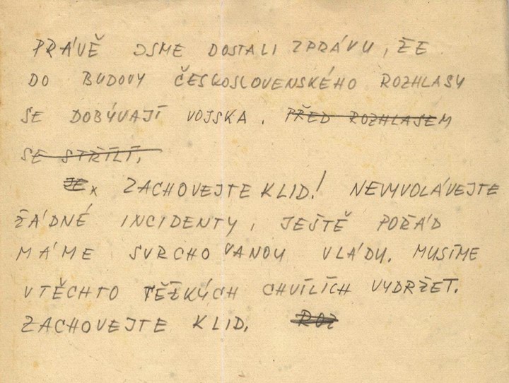 Všemu lidu Československé socialistické republiky, včera, dne 20. srpna, překročila vojska…