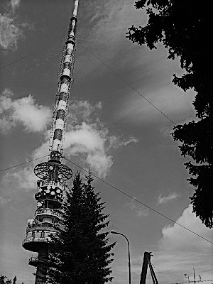 Unikátní záběry z živého vysílání provizorního vysílacího místa ČST na vysílači Kleť. Záběry na redaktory a vojenskou posádku, která hlídala objekt.