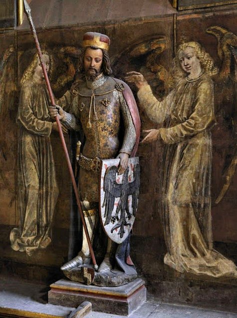 Karel IV.. Naposledy vydechl tři hodiny po západu slunce na Pražském hradě. Uctít jeho památku můžete v síni královského paláce, kde bude nyní po několik dní vystaven na katafalku. Bůh s ním.
